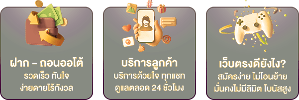 ตอบ : - ใช้ระบบฝาก-ถอนอัตโนมัติที่รวดเร็วภายใน 30 วินาที รองรับธนาคารชั้นนำทุกแห่ง มีความปลอดภัยสูงด้วยเทคโนโลยีเข้ารหัส SSL